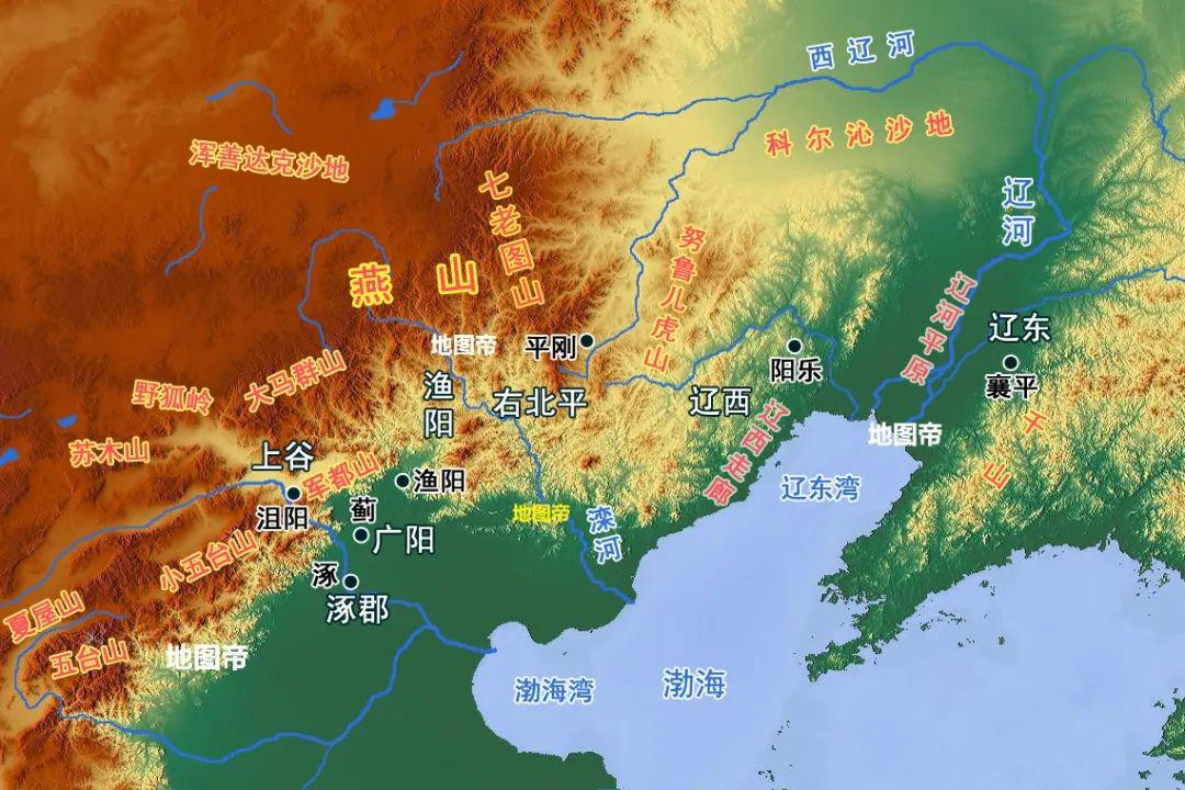 战国时燕国定都蓟(今北京市),秦灭燕后有六个郡:广阳郡(汉初拆分出涿郡)、上谷郡、渔阳郡、右北平郡、辽西郡、辽东郡,除蓟城所在的广阳郡,其余五个都是人口稀少的边郡。