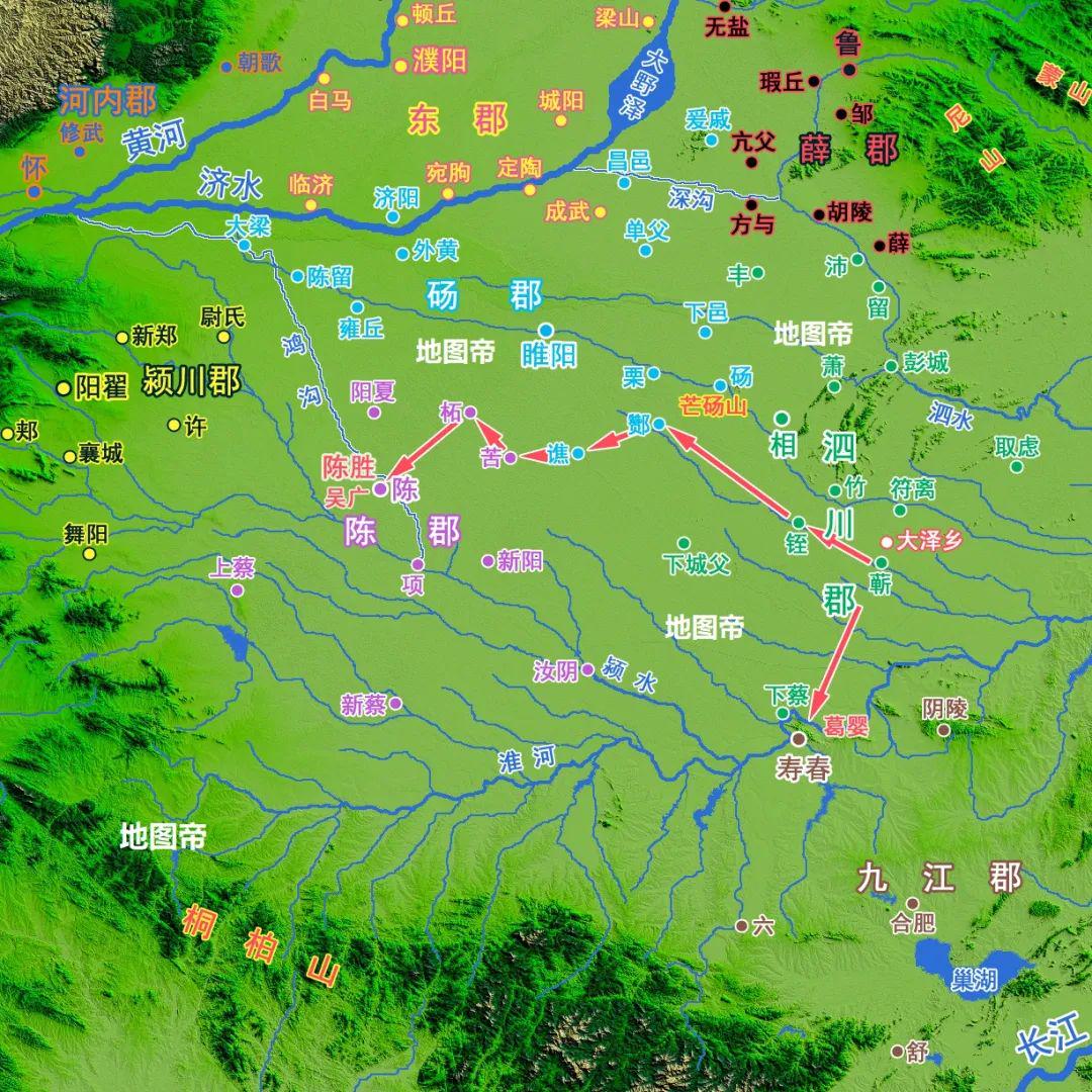 公元前209年(秦二世元年)七月,陈胜、吴广在大泽乡(今安徽宿州市东南)起兵。七月末,陈胜攻克陈城,自立为王,国号为“楚”或“张楚”,吴广立为假王,蔡赐(陈郡上蔡人)拜上柱国。