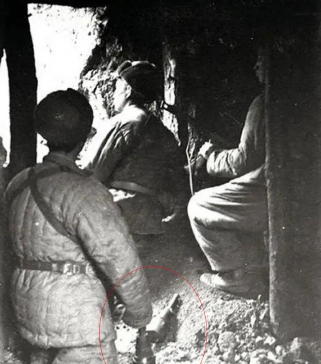 ▲于坑道中等待出击的志愿军官兵。其中一人手中就握有枚 RPG-43 型反坦克雷