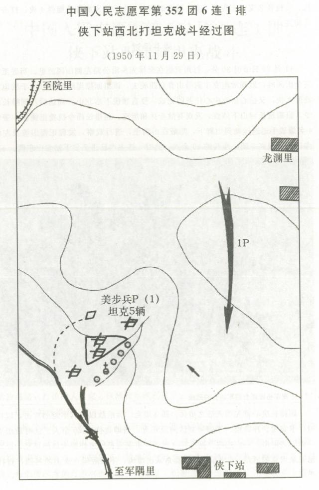 抗美援朝战争中,中国人民志愿军第 40 军 118 师第 352 团 6 连 1 排,于 1950 年 11 月 29 日夜间,在侠下站西北地区与美军第 2 师 1 个步兵排及 5 辆坦克展开激烈战斗。该排官兵勇敢战斗,不怕牺牲,英勇畏敌,机智灵活,出色地完成了战斗任务。战后,6 连 1 排被上级授予"打坦克英雄排"光荣称号。此次战斗,共计毙伤敌 20 余人,炸毁敌坦克 5 辆,缴获各类武器装备和军用物资一部。