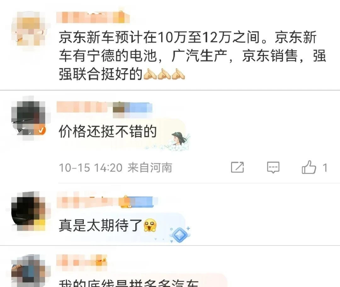 不过,也没有网友们想象中那么一边倒的期待。有的人直接表态“刘强东是真诚意”。也有部分人冷静得多,觉得就算有广汽和宁德时代撑腰,这价格也低得让人发怵,真能做出来吗?质量能保证不?这些质疑其实早在传出合作风声的时候就浮现过,在新车官宣前夕,又冒出来一波热议。